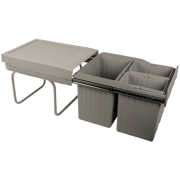 SANITOP-WINGENROTH Abfalleimer, Handbedienung, 30 l, Kunststoff, ausziehbarer Einbau-Abfallsammler mit dreifacher Trennung, mit Vollauszug-Funktion und herausnehmbaren Inneneimer, Fassungsvermögen von 1 x 15 Liter und 2 x 7,5 Liter, geeignet für Spültischunterschränke ab einer Breite von 40 cm, Maße (BxHxT): 34,5 x 33,9 x 47,3 cm