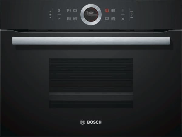 Bosch Serie 8 CDG634AB0. Ofengröße: Klein, Garraumvolumen Gesamteinheit: 38 l. Produktfarbe: Schwarz, Steuerung: Berührung, Steuerungsposition: Vorderseite. Anschlusswert: 1750 W, AC Eingangsspannung: 220 – 240 V, AC Eingangsfrequenz: 50 – 60 Hz. Breite: 594 mm, Tiefe: 548 mm, Höhe: 455 mm