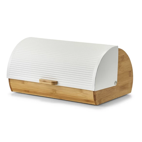 ZELLER Brotkasten »Bamboo«, BxHxL: 27 x 19 x 39 cm, weiß, moderner Brotkasten im Scandi-Design, Material: Bamboo / Metall, Farbe: weiß / naturbelassen, Pflegehinweis: mit feuchtem Tuch reinigen, Maße: ca. 39 x 27 x 19 cm