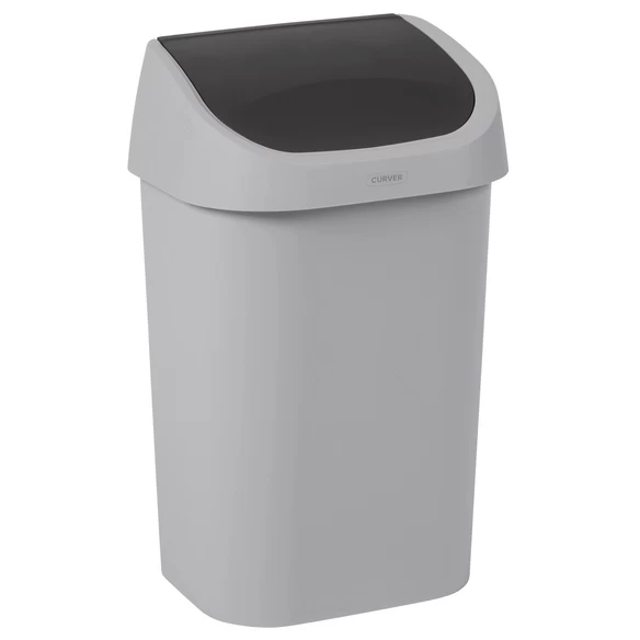 CURVER Abfalleimer 25 l, hellgrau/anthrazit, Abfallbehälter mit Schwingdeckel, sehr elegante Optik in Duo-Color, mit Müllbeutelfixierung, Beutelrand wird vom Rahmen des Deckels verdeckt, aus 100% Recyclingmaterial