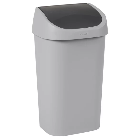 CURVER Abfalleimer 50 l, hellgrau/anthrazit, Abfallbehälter mit Schwingdeckel, sehr elegante Optik in Duo-Color, mit Müllbeutelfixierung, Beutelrand wird vom Rahmen des Deckels verdeckt, aus 100% Recyclingmaterial