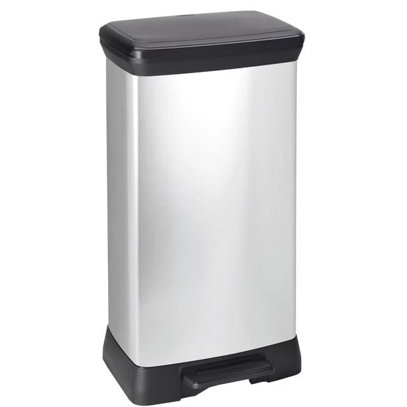 CURVER Mülleimer, 50 l, seidenmatt, Metalleffekt-Lackierung, Stabiles Pedal , Anti-Geruchsdeckel , Beutelhalterung, Leicht zu reinigen
