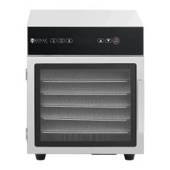 Der leistungsstarke Dörrautomat von Royal Catering ermöglicht die Herstellung von gesunden, getrockneten Köstlichkeiten in Ihrem Restaurant, Ihrer Bar oder auch zu Hause. Der Entzug von Wasser während des Trocknungsprozesses sorgt dafür, dass Früchte, Gemüse und Kräuter sowie Fisch und Fleisch deutlich länger halt- und genießbar sind. leistungsstark pflegeleicht – dank des Einsatzes von Edelstahl beim Gerät und den Einlagen einstellbar – mit einem Temperaturbereich von 30 – 90 °C präzise – kontrollierter Vorgang durch 0,5 – 24 h einstellbaren Timer praktisch – 6 entnehmbare Trockenetagen