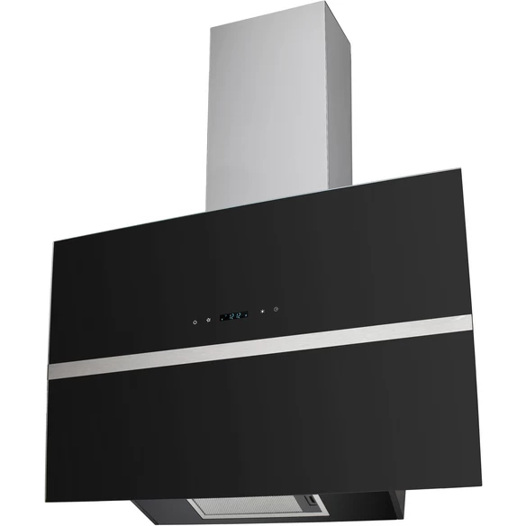 Wolkenstein Dunstabzugshaube, Motorleistung: 73 W, Edelstahl/Glas, schwarz, LED-Beleuchtungssystem, Touch Control, Display, Schwarze Glasfront