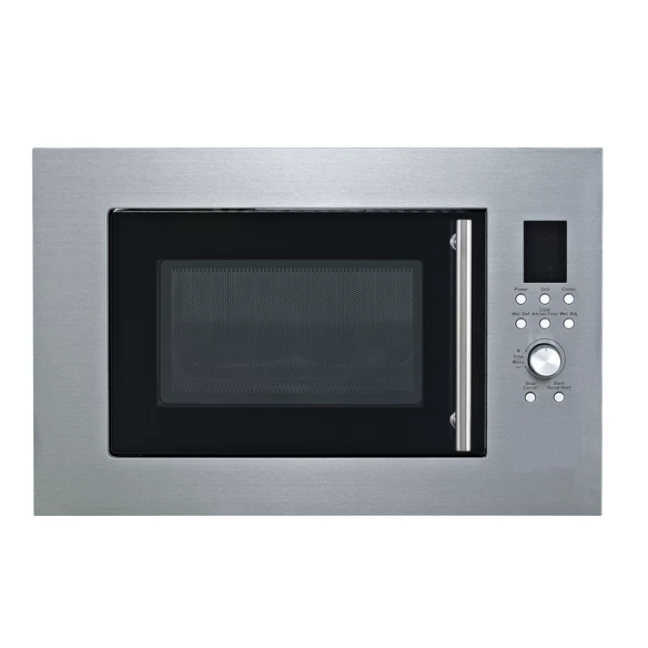 PKM Einbau-Mikrowelle, 900 W, silberfarben, Display & Timer, 8 Automatikprogramme, Grillfunktion, Edelstahlgehäuse