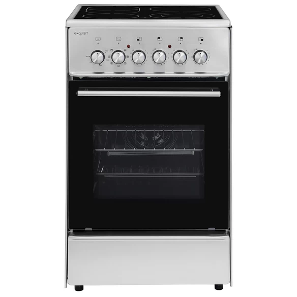 Exquisit Elektro-Standherd »ECM 8-4.1 BZ Inox«, 47 l, Metall/Glas, silbergrau, 46 L Backofenvolumen, Energieeffizienz A: effizienter Verbrauch, 2 Fach Türverglasung für extra Sicherheit und Wärme, Extra Schublade zum verstauen Ihres Zubehörs, Glaskeramikkochfeld mit Zweikreis- und Bräterzone