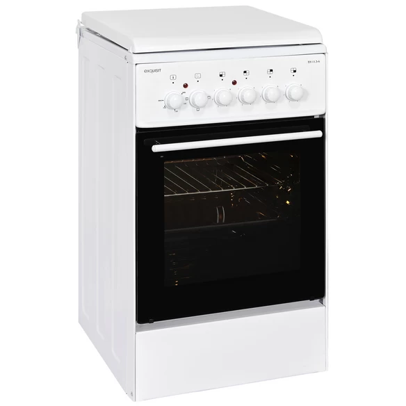 Exquisit Elektro-Standherd »EH 11.3-4«, 51 l, Metall/Glas, weiß, Klassisch Weiß – geeignet für jeden Haushalt, Energieeffizienz A: effizienter Verbrauch, Konventionell – für klassisches, traditionelles Backen & Braten, Massekochfeld mit Blitzkochplatte für schnelles Kochen, Kochmulde mit Deckel