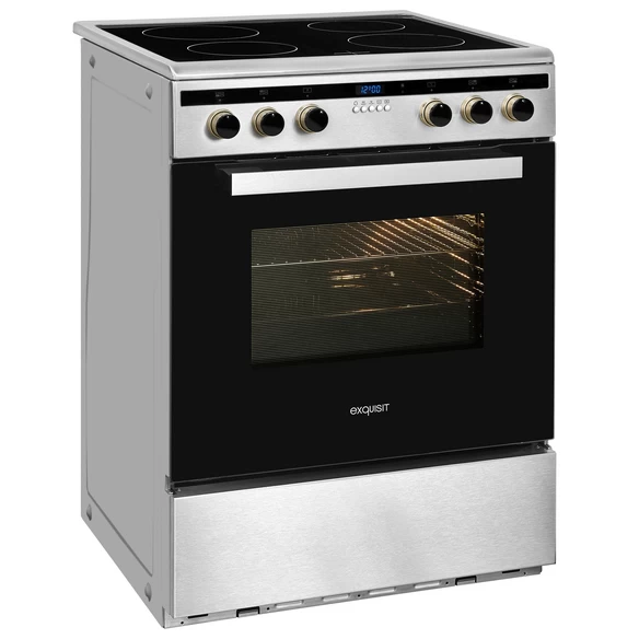 Exquisit Elektro-Standherd »EHI 60-3.1 Inox«, 65 l, Metall/Glas, silbergrau, Edelstahl-Design – modern, passend für jede Küche, Energieeffizienz A: effizienter Verbrauch, Heißluft – für ideale Back- und Bratergebnisse, Induktionskochfeld – für superschnelles Kochen, Timer – Start/Stopp-Timer für beste Ergebniss