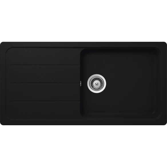 SCHOCK Küchenspüle, Formhaus D-100L Onyx, Granit | Komposit | Quarz, 100 x 50, Für den Einbau von oben, Spüle mit Becken nach rechts oder links einbaubar, Reinigungsfreundliche und widerstandsfähige Oberfläche, Material besteht aus bis zu 80% aus natürlichem Quarzsand (Granit), Mit automatischer Ablauföffnung (Excenterbedienung)