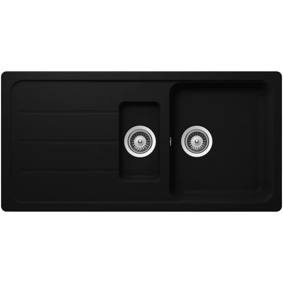 SCHOCK Küchenspüle, Formhaus D-150L Nero, Granit | Komposit | Quarz, 100 x 50, Für den Einbau von oben, Spüle mit Becken nach rechts oder links einbaubar, Reinigungsfreundliche und widerstandsfähige Oberfläche, Material besteht aus bis zu 80% aus natürlichem Quarzsand (Granit), Mit automatischer Ablauföffnung (Excenterbedienung)