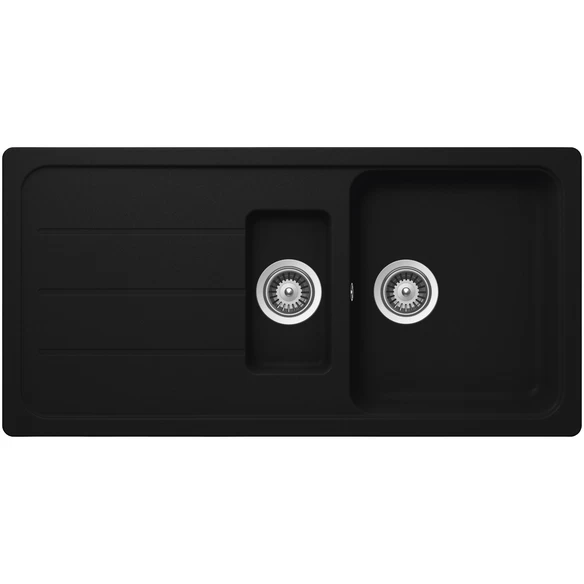 SCHOCK Küchenspüle, Formhaus D-150L Onyx, Granit | Komposit | Quarz, 100 x 50, Für den Einbau von oben, Spüle mit Becken nach rechts oder links einbaubar, Reinigungsfreundliche und widerstandsfähige Oberfläche, Material besteht aus bis zu 80% aus natürlichem Quarzsand (Granit), Mit automatischer Ablauföffnung (Excenterbedienung)