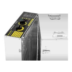 Der leistungsstarke Dörrautomat aus dem Gastronomiebedarf von Royal Catering Der leistungsstarke Dörrautomat RCDA-1350/100S von Royal Catering ermöglicht die Herstellung von gesunden, getrockneten Köstlichkeiten in Ihrem Restaurant, Ihrer Bar oder auch zu Hause. Der Entzug von Wasser während des Trocknungsprozesses sorgt dafür, dass Früchte, Gemüse und Kräuter sowie Fisch und Fleisch deutlich länger halt- und genießbar sind. Beef Jerky oder getrocknete Gemüsescheiben? Mit einer Leistung von 1.500 W sorgt das Heizelement des Dörrgerätes dafür, dass die gewünschte Temperatur für den Dörrvorgang schnellstmöglich erreicht und dank des Temperaturkontrollsystems konstant gehalten wird. Der Temperaturbereich des Dehydrators kann zwischen 40 und 90 °C eingestellt werden. Die Einstellung der Temperatur sowie des Timers erfolgt intuitiv und nutzerfreundlich über Drehregler an der Oberseite des…