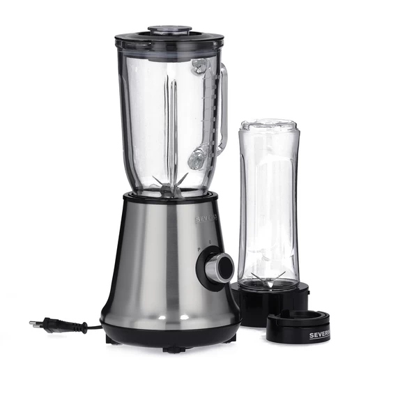 SEVERIN Stabmixer, 500 w, 22000 u/min, abnehmbarer Mixbehälter aus Glas mit Ausgusszotte, auch zum Crushen von Eis geeignet, Smoothie-Maker mit einem abnehmbaren und spülmaschinenfesten Trinkbehälter aus Tritan, Mixer und Trinkbehälter in einem, besonders praktisch für unterwegs, 2 Geschwindigkeitsstufen mit zusätzlicher Puls-Taste (ca. 22.000 Umdrehungen/min), Deckel mit Nachfüllöffnung und integriertem Messbecher