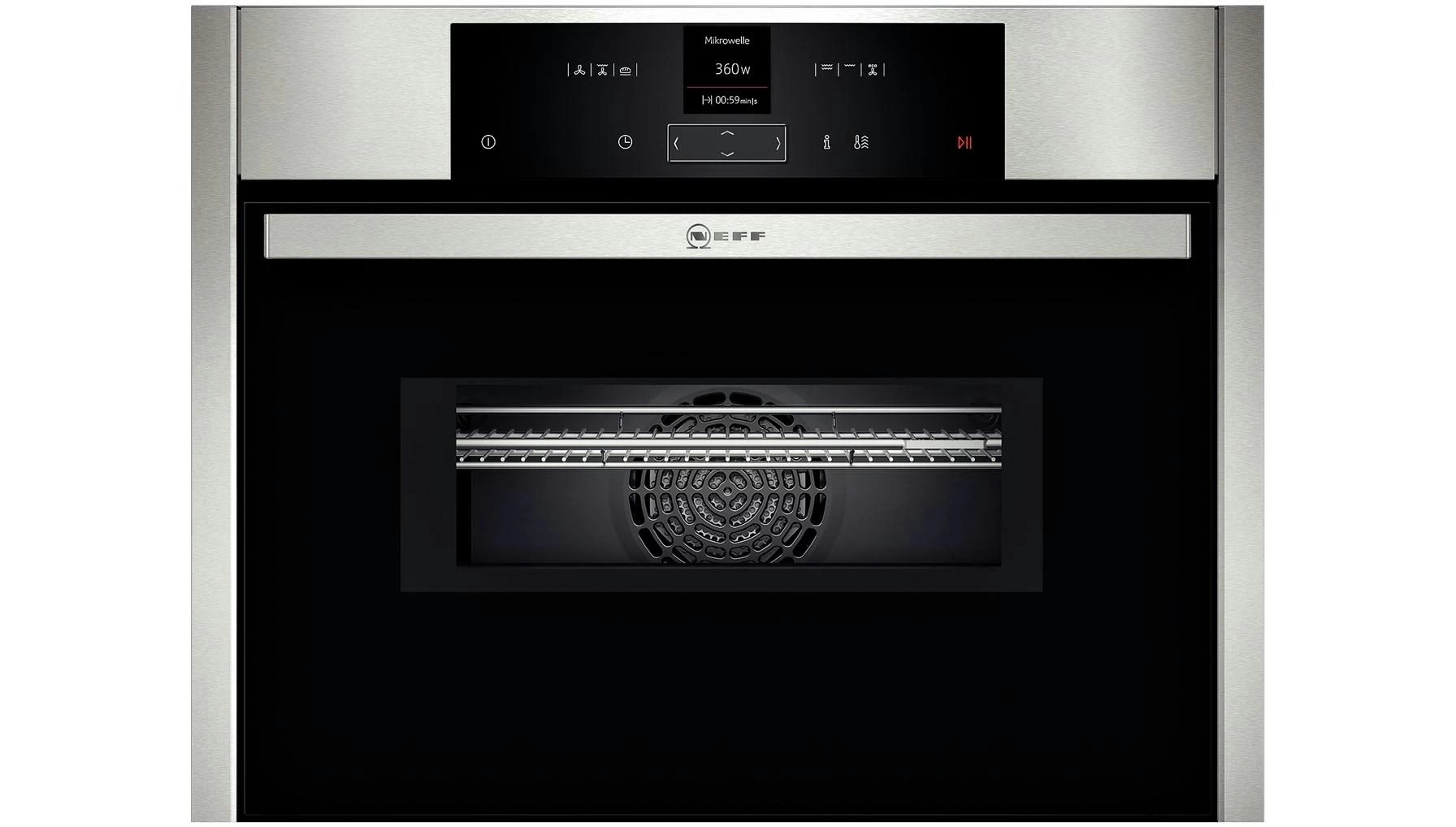 Siemens iQ700 CD634GAS0. Ofengröße: Klein, Garraumvolumen Gesamteinheit: 38 l. Produktfarbe: Schwarz, Edelstahl, Steuerung: Tasten, Drehregler, Berührung, Steuerungsposition: Vorderseite. Anschlusswert: 1750 W, AC Eingangsspannung: 220 – 240 V, AC Eingangsfrequenz: 50 – 60 Hz. Breite: 594 mm, Tiefe: 548 mm, Höhe: 455 mm
