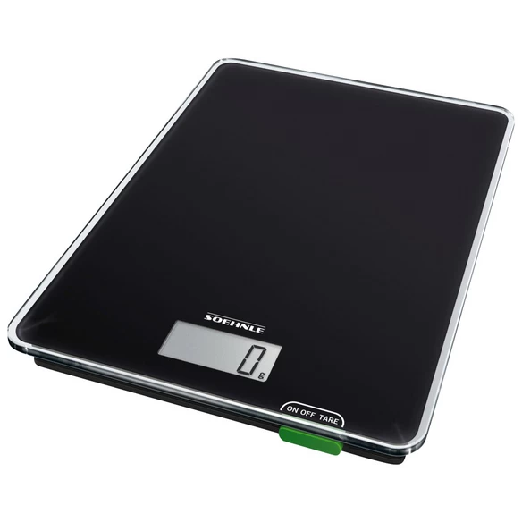 SOEHNLE Küchenwaage, Tragfähigkeit: 5 kg, Tragkraft bis zu einem maximalen Gesamtgewicht von 5 kg (1-g-genau), LCD-Anzeige für gute Lesbarkeit der Ziffern (12mm), Praktische Zuwiegefunktion für komfortables Zuwiegen von verschiedenen Zutaten in einer Schüssel, Platzsparende Verstauung durch flaches Design, Besonders energiesparend durch automatische Abschaltfunktion