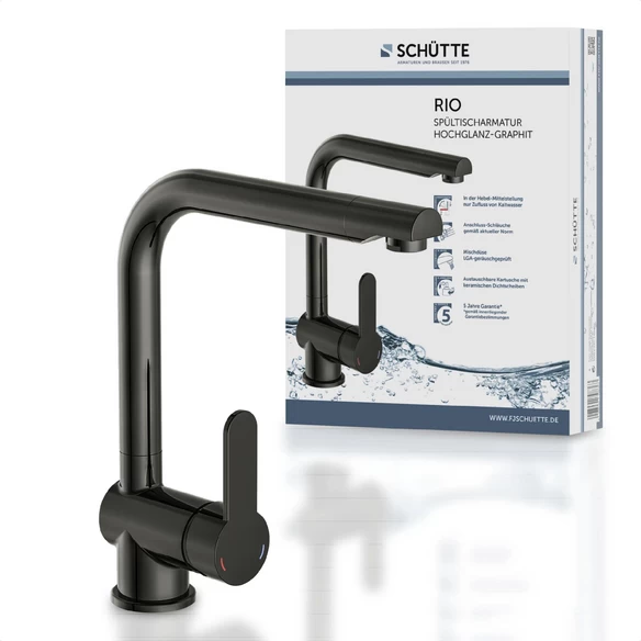 SCHÜTTE Spültischarmatur »Rio«, Messing, glänzend, ⅜“ und ½“, Standarmatur mit hohem Bogenauslauf und 360° Schwenkbereich für einen komfortablen Aktionsradius, energiesparend durch Cold-Start-Funktion – nur Zufluss von Kaltwasser bei Hebel-Mittelstellung, auswechselbare Kartusche mit keramischen Dichtungen,Regelung der Durchflussmenge & Wassertemperatur, alle Komponenten mit Wasserkontakt sind KTW und W270 geprüft, einfache Montage dank Schnellbefestigungsset (Zentralverschraubung)
