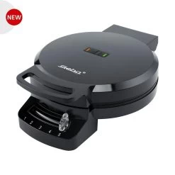 Elektrische Waffelmaker mit kreisförmigem Design, um gleichmäßig zu kochen.