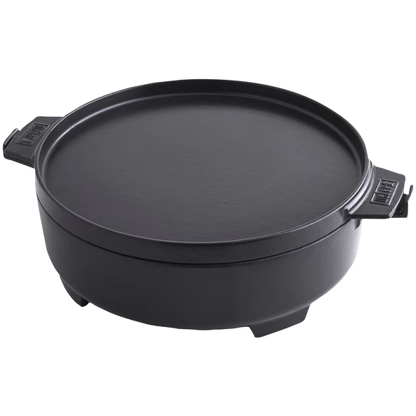 WEBER Mehrzweckbräter, Porzellanemailliertes Gusseisen, Mehrzweckbräter, 6,8 Liter Fassungsvermögen, gleichmäßige Wärmeverteilung und Wärmespeicherung, Deckel kann als Pfanne benutzt werden