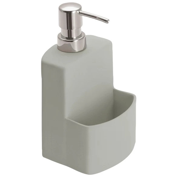 WENKO Spülmittelspender »Festival«, grau, Keramik, Mit integrierter Aufbewahrungsmöglichkeit für Spülschwämme, SOFT-TOUCH Oberfläche (Keramik gummiert), Hochglanzverchromte Kunststoffpumpe zur portionierten Spülmittelabgabe, Fassungsvermögen ca. 380 ml, Nachfüllbar