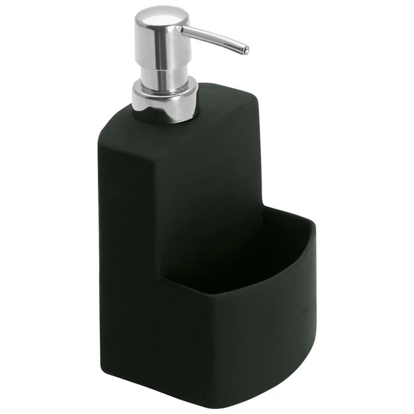 WENKO Spülmittelspender »Festival «, schwarz, Keramik, Mit integrierter Aufbewahrungsmöglichkeit für Spülschwämme, SOFT-TOUCH Oberfläche (Keramik gummiert), Hochglanzverchromte Kunststoffpumpe zur portionierten Spülmittelabgabe, Fassungsvermögen ca. 380 ml, Nachfüllbar